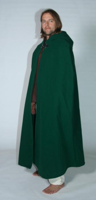 Langer mittelalterlicher Woll-Umhang aus schwerer Qualität mit Riemen-Verschluss am Hals.